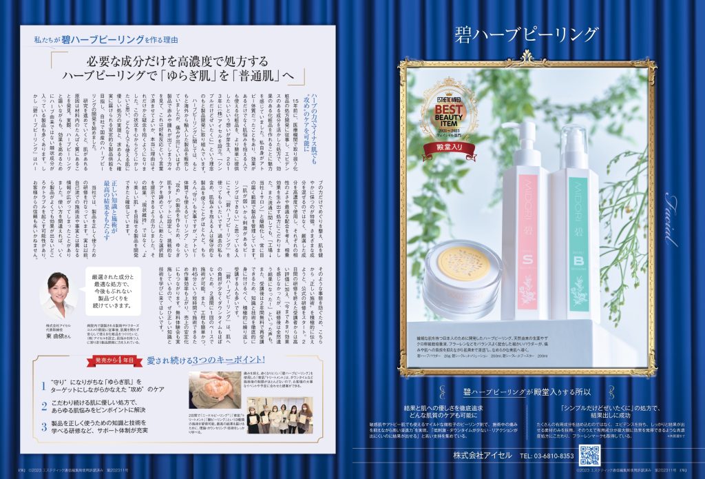 受賞の掲載誌面はエステティック通信 2023年11月号にて掲載されておりますので