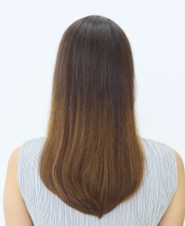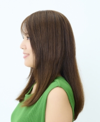 自然な明るさのブラウンに、光を反射するやわらかなツヤをプラス。暗い地毛に自然な抜け感を与え、光の角度でふんわり立体感を演出します。大人の透明感と軽やかさを両立する定番カラーです。