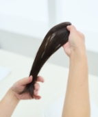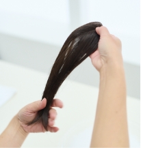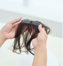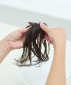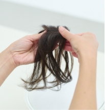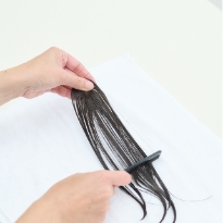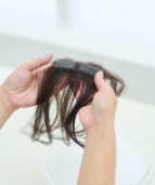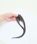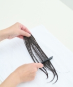 毛先をコームやブラシで軽くとかし、地毛と自然になじませます。