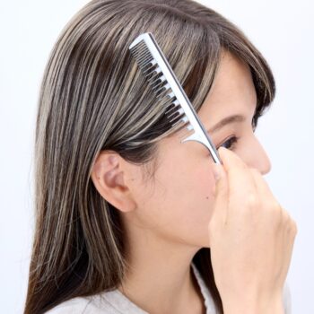 ピタカラー装着後、地毛と一緒にコーミングすることで、浮きや境目を目立ちにくくし、自然なハイライト感に整えます。