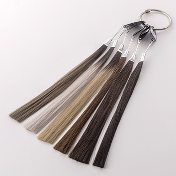 PITACOLOR(ピタカラー)の仕上がりイメージを、その場でお客様と共有できるサロン様向けの専用カラーチャート(毛束見本)です。 実際のピタカラーと同素材の毛束を使用しており、色味・ツヤ・質感・太さまで、装着時のイメージに近い状態でご確認いただけます。
